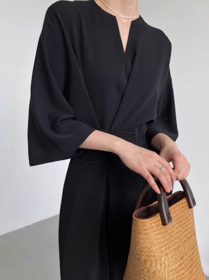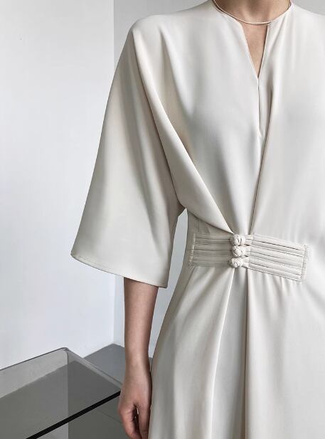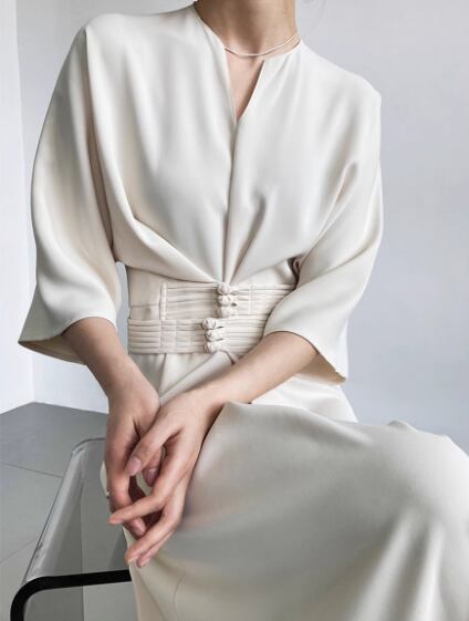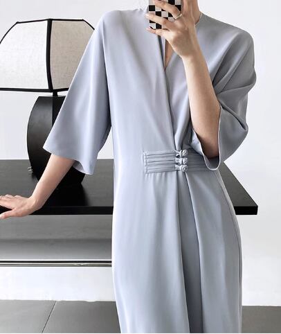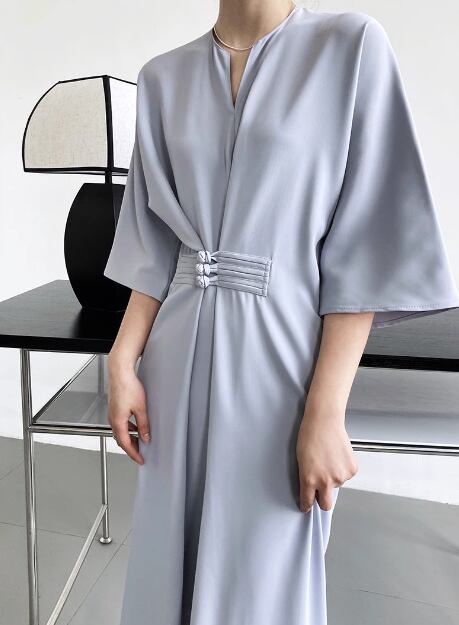 レディース ワンピース ロング 5分袖 7分袖 Vネック スリットネック ウエストマーク 異国風 大人可愛い きれいめ シンプル 上品 おしゃれ ルーズ 個性的 クール エレガント モダン ラグジュアリー 知的 シック 高級感 芸術的 アーティスティック スタイリッシュ 高貴 無地 秋 デート お出かけ 普段使い XS S M L ゆったり ゆる ブラック オフホワイト ブルー 大人デザイン