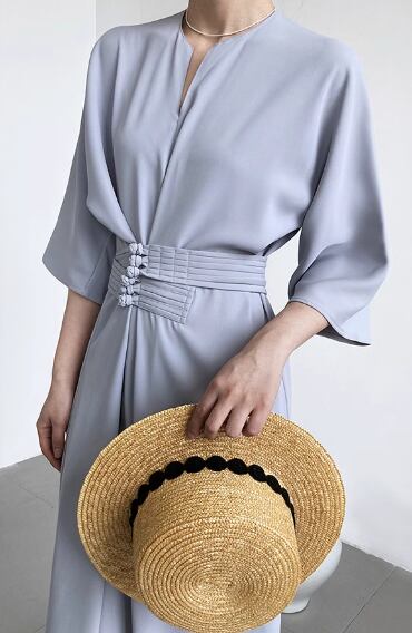 上品で落ち着いた色味と大人可愛いシンプルなデザインが魅力的なロングワンピース。