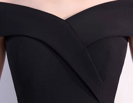 エレガントでフェミニンなデザインのオープンショルダードレス。