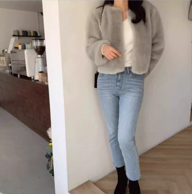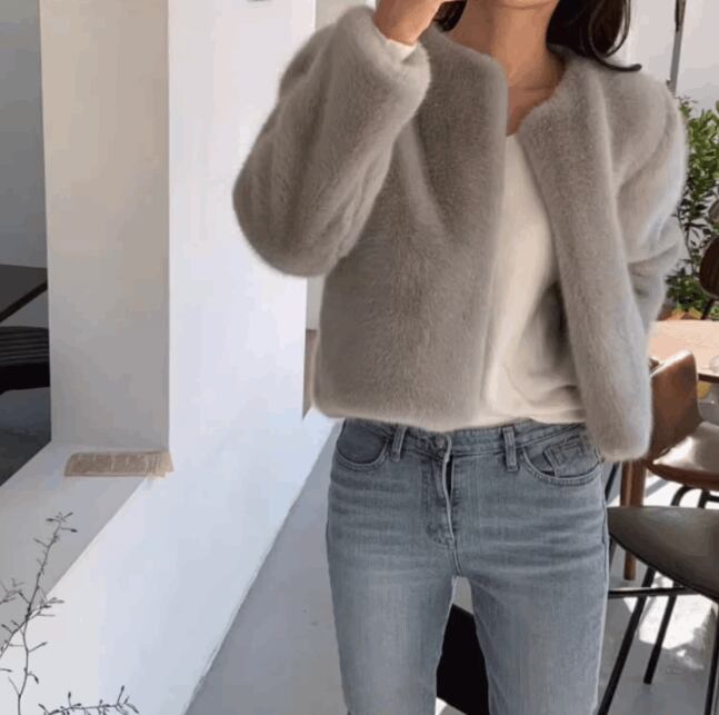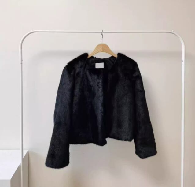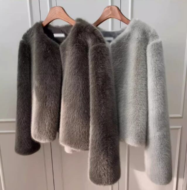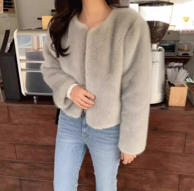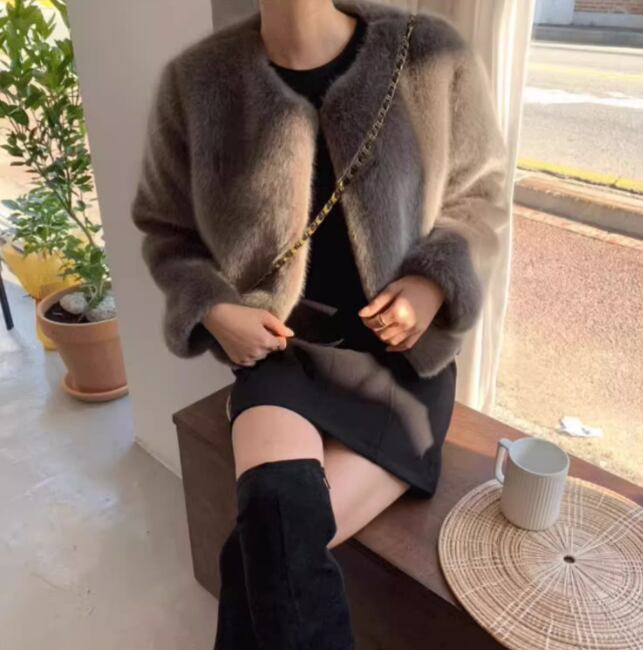 レディース コート アウター ファー ノーカラーコート ショート 長袖 ラウンドネック ノーカラー ふわふわ フェイクファー かわいい 大人可愛い 上品 フォーマル 無地 春 秋 冬 デート お出かけ 女子会 S M L XL グレー ブラック ブラウン