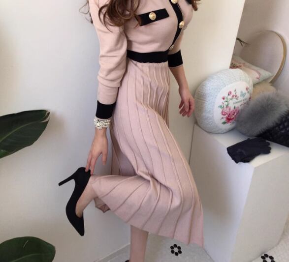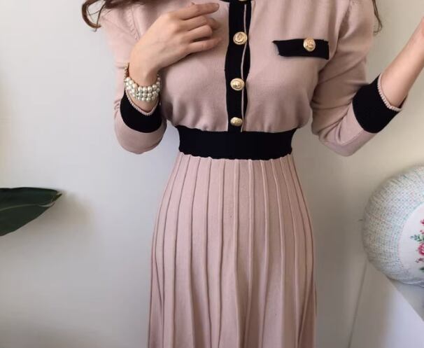 レディース ワンピース プルオーバー ドレス ニットワンピ ロング 長袖 ラウンドネック スリム 細身 プリーツ ウエストマーク ハイウエスト ボタン 切り替えデザイン 大人可愛い きれいめ 上品 おしゃれ レトロ こなれ感 ガーリー エレガント モダン 存在感 ラグジュアリー クラシカル 知的 シック 高級感 スタイリッシュ 高貴 秋 冬 デート お出かけ 普段使い モテ 清楚 トレンド 流行 フリーサイズ 小さめ カーキ 大人デザイン