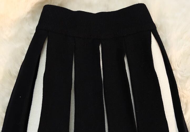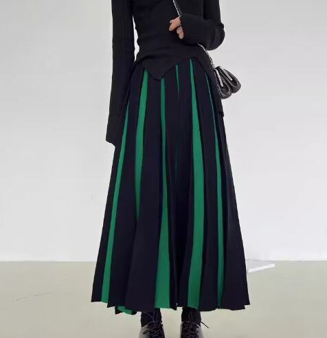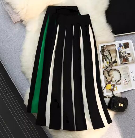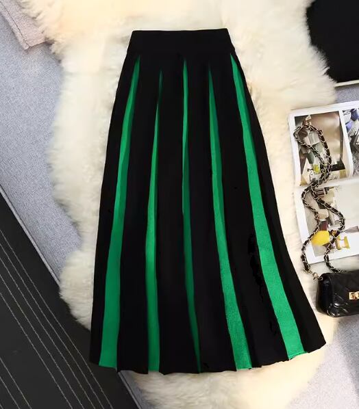 レディース スカート ボトムス ニットスカート ミモレ ロング Aライン プリーツ ハイウエスト ウエストゴム ストレッチ 伸縮性 かわいい 大人可愛い カジュアル 上品 おしゃれ レトロ 個性的 モダン 存在感 ラグジュアリー シック 芸術的 アーティスティック スタイリッシュ ストライプ 秋 冬 デート お出かけ 楽ちん 脚長 普段使い 着回し トレンド 流行 S M L XL ブラック グリーン