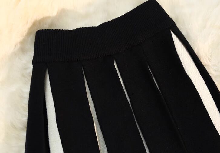 シックな色味の二色使いがおしゃれなロング丈のニットスカート。