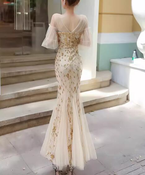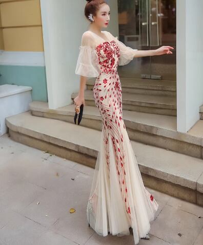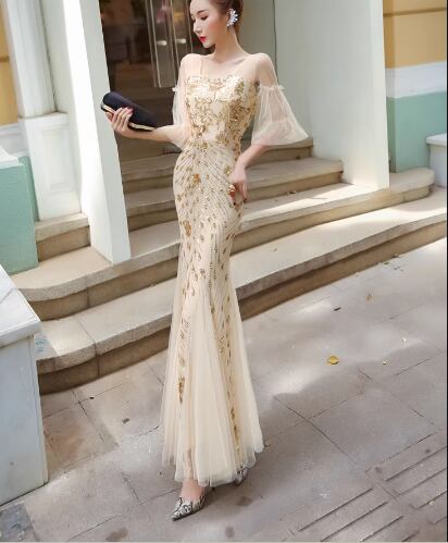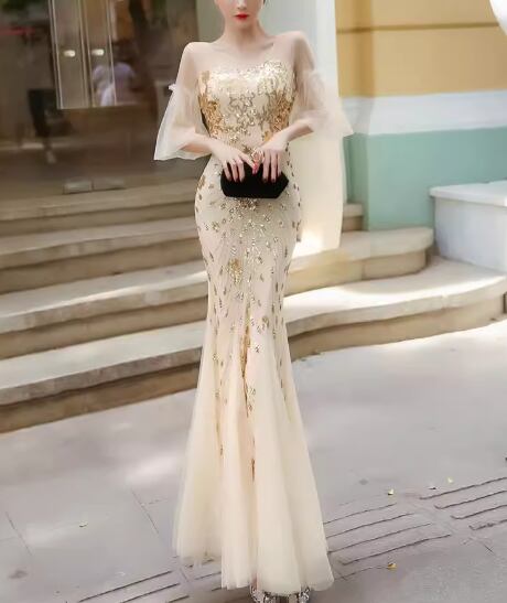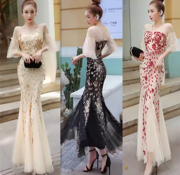 レディース ドレス イブニングドレス パーティードレス ロング マキシ 長袖 Vネック タイト スリム 細身 フィッシュテール ファスナー ビーズ 大人可愛い きれいめ 上品 おしゃれ かっこいい こなれ感 個性的 クール エレガント 主役級 存在感 プリンセス ラグジュアリー 豪華 セレブリティ シック 高級感 芸術的 アーティスティック 華やか スタイリッシュ 高貴 フェアリー 秋 パーティー イベント S M L XL 小さめ ブラック レッド アプリコット