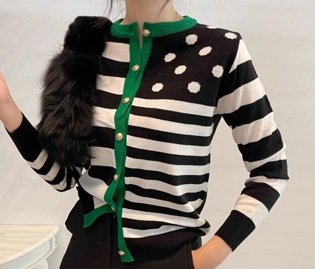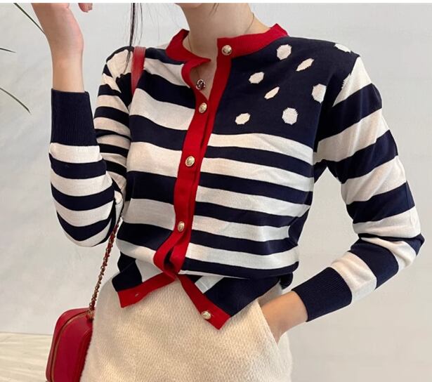 レディース トップス ニット セーター カーディガン ショート 長袖 ラウンドネック ノーカラー 前開き ボタン かわいい 大人可愛い カジュアル おしゃれ 個性的 モダン 存在感 キュート ラグジュアリー 派手 高級感 芸術的 アーティスティック 華やか スタイリッシュ 水玉 ボーダー 秋 冬 デート お出かけ 旅行 休日 ショッピング コンサート ライブ カフェ 韓国 普段使い 着回し フリーサイズ レッド グリーン