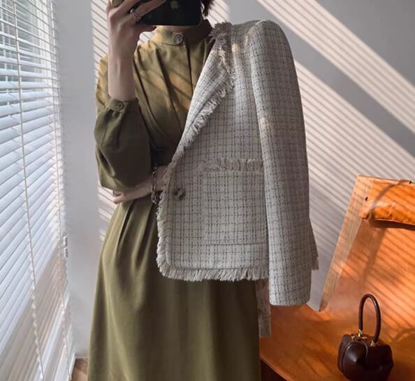 シックな秋カラーが魅力的な大人可愛い上品なロングドレス。