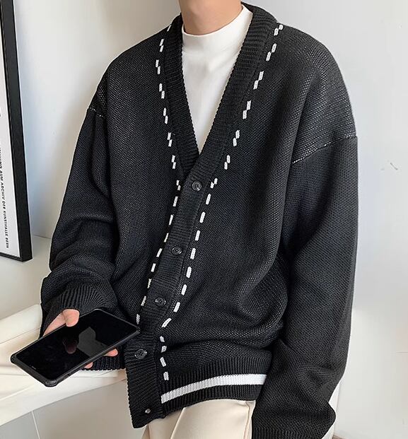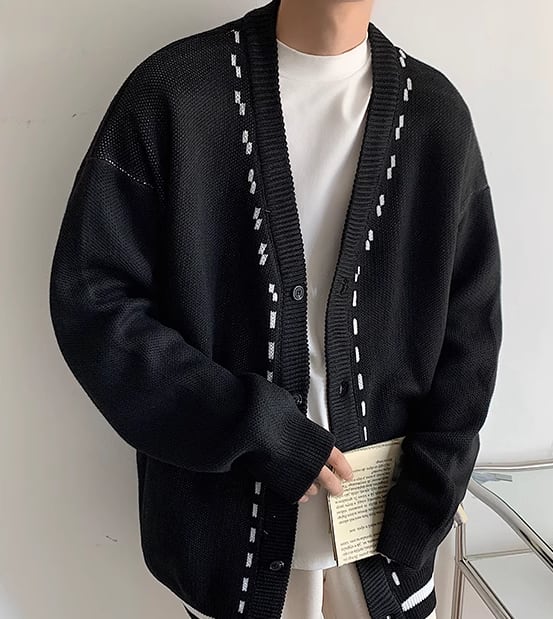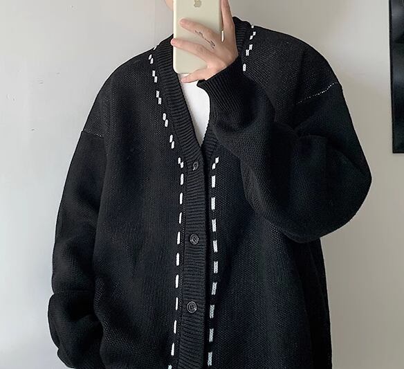 メンズ 男性用 ニット セーター カーディガン ミドル丈 長袖 Vネック 前開き ボタン 大人可愛い シンプル カジュアル 上品 おしゃれ かっこいい ルーズ 個性的 クール エレガント キュート ナチュラル 清潔感 ハンサム シック 高級感 春 秋 デート お出かけ 旅行 休日 ショッピング コンサート ライブ お花見 カフェ 重ね着 普段使い 着回し レイヤード モテ トレンド 流行 M L XL ゆったり ブラック ネイビー