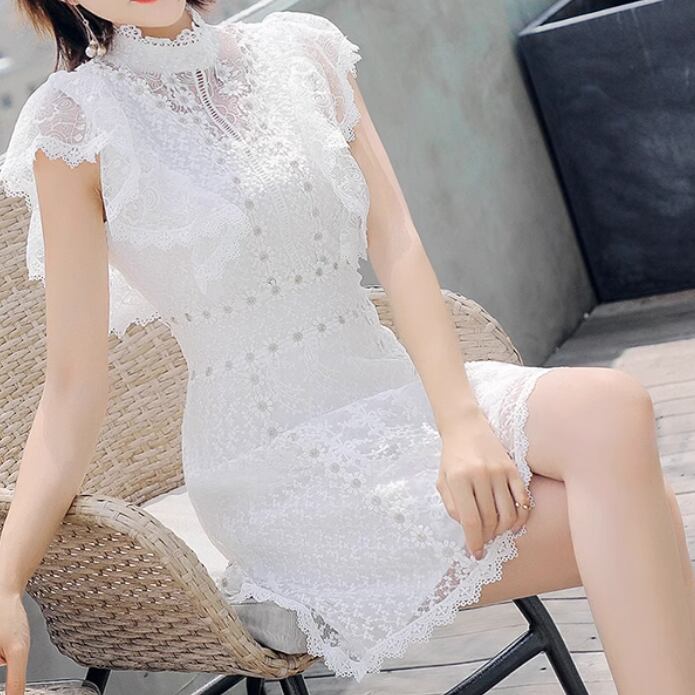 ドレス ワンピース 二次会 演奏会 発表会 ミニ ショート 膝上 ノースリーブ ハイネック スレンダー スリム 細身 Aライン レース ファスナー ハイウエスト 透け感 シースルー 薄手 可愛い きれいめ シンプル カジュアル 大人可愛い 上品 おしゃれ かっこいい レトロ キュート ガーリー エレガント モダン 主役級 存在感 とろみ感 抜け感 清楚 ゴージャス エレガント 華やか クラシカル 花柄 フラワー リゾート ホテル レストラン 美脚 脚長 高見え 格上げ 夏 S M L XL ホワイト