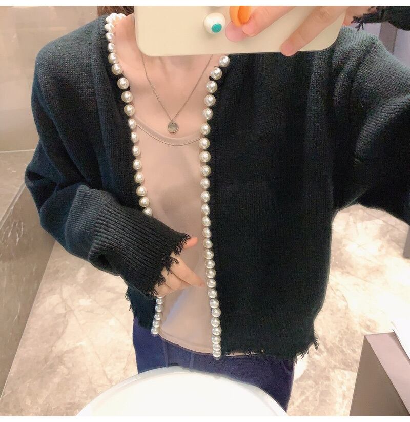 パールトリミング トッパーカーディガン レディース トップス カーディガン 上着 ニットジャケット 羽織り ショート ミディアム丈 長袖 ドロップショルダー 襟なし 前開き ノーボタン フリンジ風ダメージ加工 ニット かわいい 大人可愛い きれいめ シンプル カジュアル 上品 こなれ感 抜け感 フェミニン 無地 春 秋 ママ 女の子 学生 学校 通学 デート お出かけ 旅行 公園 女子会 休日 ショッピング カフェ 重ね着 韓国 オルチャン 脚長 普段使い 着回し S M L 白 ホワイト 黒 ブラック