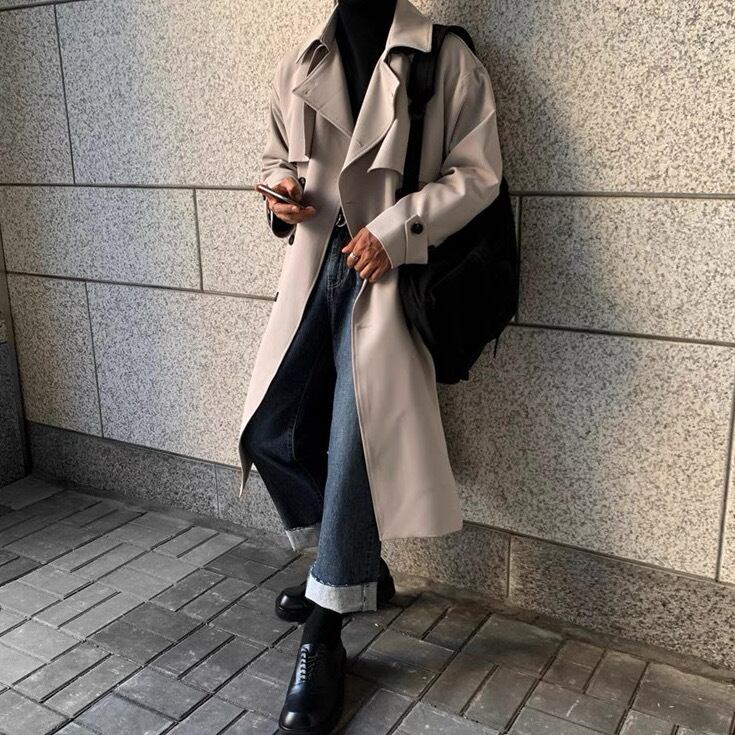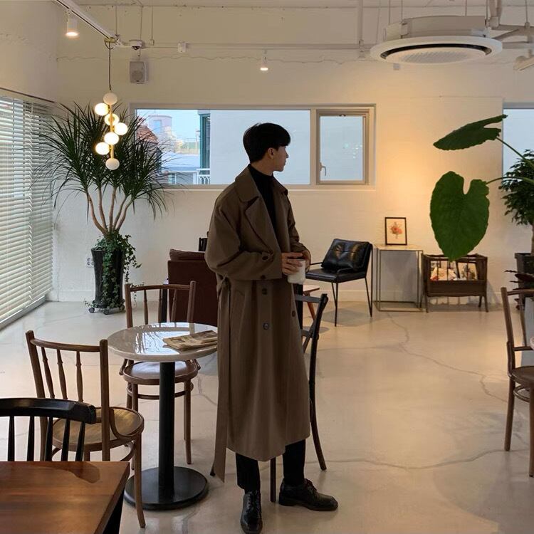 メンズ コート アウター 上着 ロングコート トレンチ ロング 長袖 襟付き ラペル ボタン きれいめ シンプル 上品 おしゃれ かっこいい こなれ感 メンズライク マニッシュ クール モード系 エレガント 主役級 存在感 フォーマル クラシカル 無地 秋 冬 オフィス ビジネス 通勤 学生 学校 通学 デート お出かけ パーティー レストラン 休日 ホテル ショッピング 韓国 オルチャン コーデ スタイル 普段使い 着回し S M L XL 2XL 3XL 大きいサイズ カーキグレー ブラック ブラウン