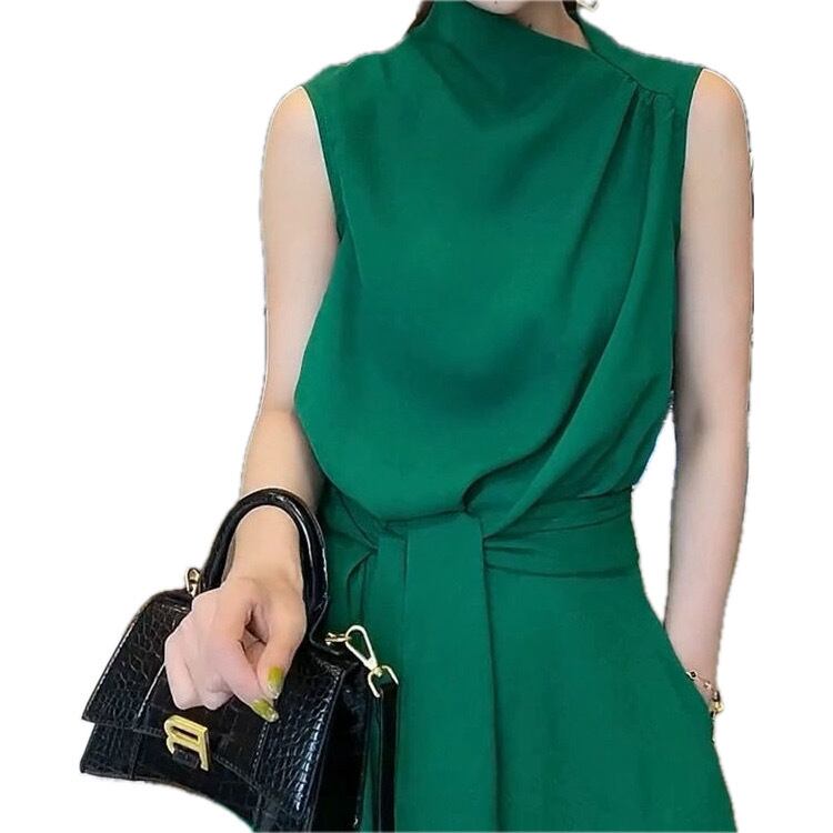 レディース ドレス ワンピース ワンピースドレス パーティー パーティードレス 結婚式 二次会 披露宴 演奏会 発表会 ステージ 舞台 衣装 ラウンジ クラブ ロング ノースリーブ スタンドカラー アシンメトリー Aライン カクテル イブニング ウエストマーク ハイウエスト きれいめ シンプル 大人可愛い 上品 おしゃれ かっこいい クール モード エレガント シック 無地 イベント ホテル レストラン 韓国 体型カバー 高見え 女子会 春 夏 サイズ S M L XL カラー 黒 ブラック 緑 グリーン