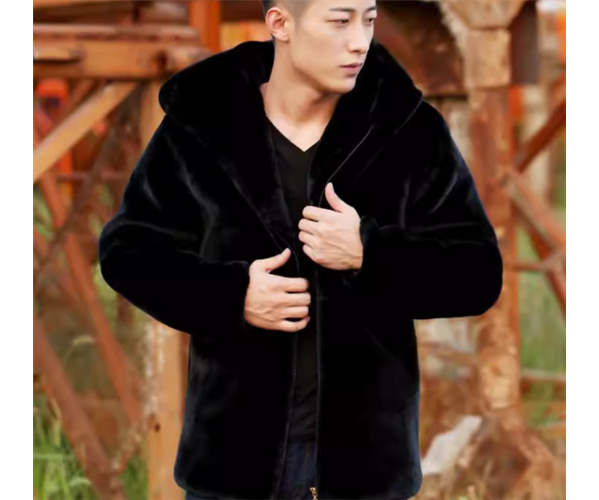 メンズ 男性用 コート アウター 上着 毛皮のコート ミドル丈 長袖 ファスナー 前開き フード ベルベット 毛皮 大人可愛い きれいめ シンプル カジュアル 上品 おしゃれ かっこいい クール エレガント ラグジュアリー ワイルド ハンサム シック 高級感 スタイリッシュ 無地 冬 デート お出かけ 暖かい 防寒 普段使い 着回し トレンド 流行 M L XL ブラック