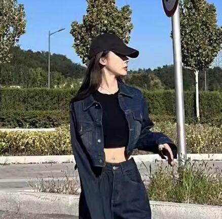 シックなカラーとスタイリッシュなデザインがかっこいいデニム生地のセットアップ。