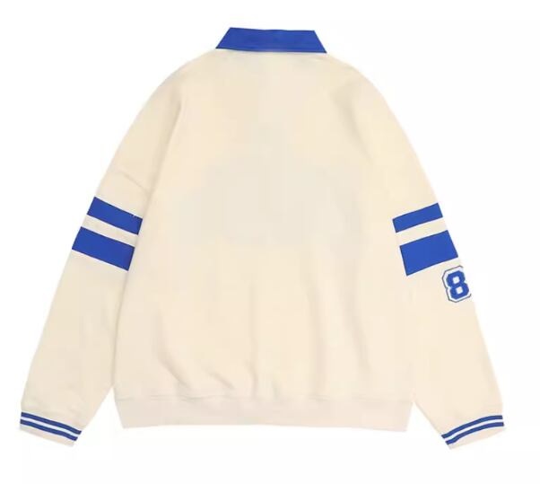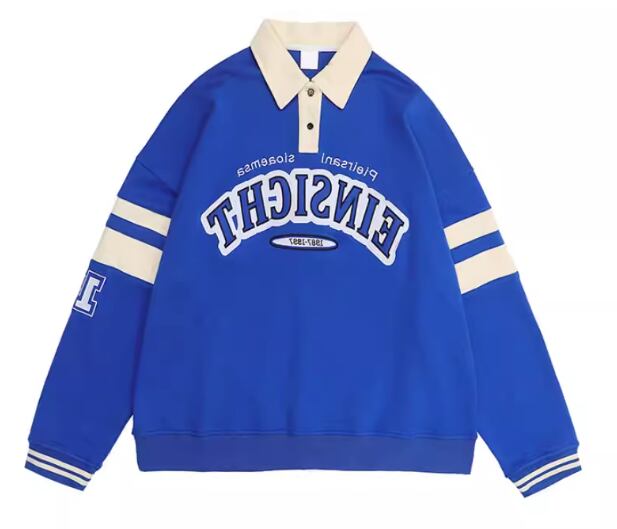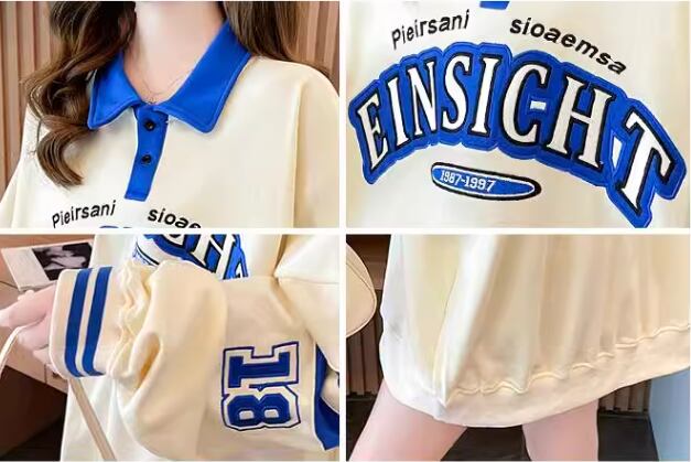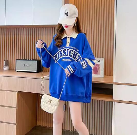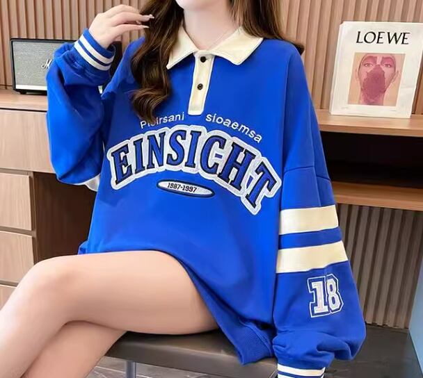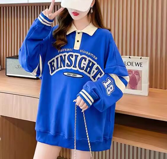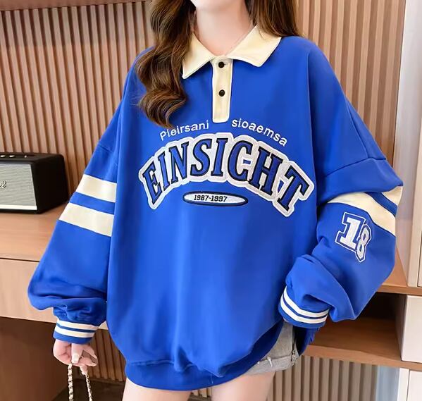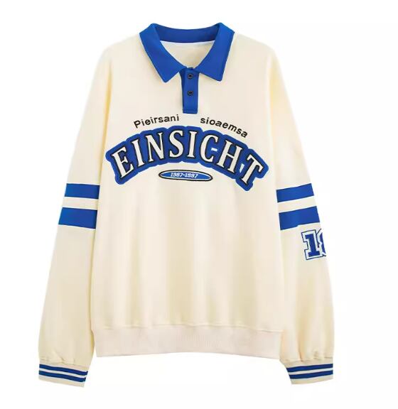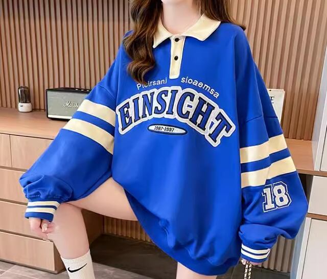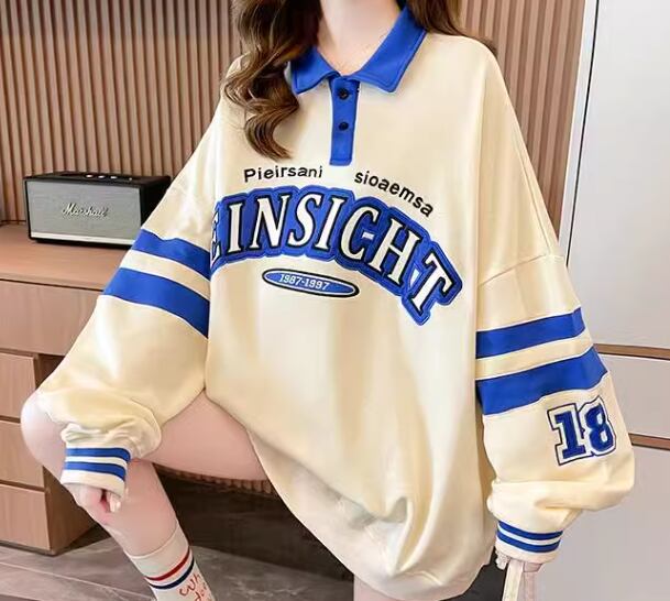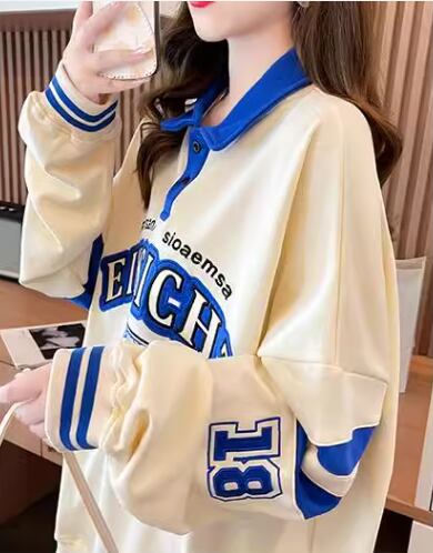レディース トップス シャツ スポーツウェア ポロシャツ ミドル丈 長袖 襟付き ポロカラー ストリート 刺繍 薄手 かわいい カジュアル おしゃれ レトロ メンズライク ボーイッシュ スポーティー ルーズ クール 存在感 爽やか ハンサム シック 高級感 スタイリッシュ プリント 文字 テキスト 英語 春 秋 10代 20代 学生 デート お出かけ 普段使い 着回し トレンド 流行 M L XL ゆったり ゆる 大きめ オーバーサイズ ブルー アプリコット
