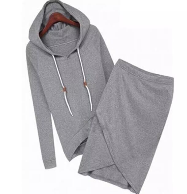 二点セット 上下セット ツーピース レディース スカート トップス プルオーバー パーカー スウェット セットアップ タイトスカート 膝丈 イレギュラー 不規則 長袖 ラグラン タイト スリム 細身 ウエストゴム フード ストレッチ 伸縮性 大人可愛い きれいめ シンプル カジュアル おしゃれ かっこいい ラフ 個性的 クール モダン ラグジュアリー ハンサム シック スタイリッシュ 無地 秋 デート お出かけ 楽ちん 普段使い 着回し S M L XL グレー