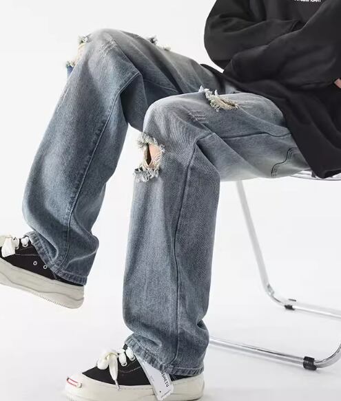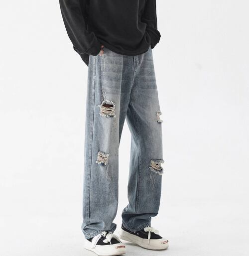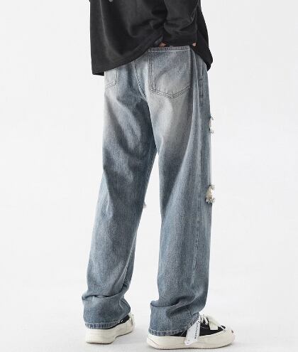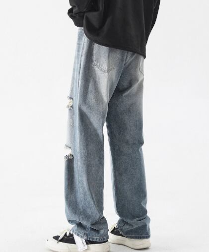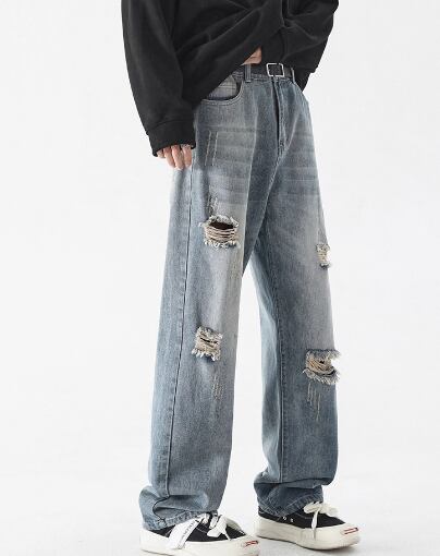 メンズ 男性用 パンツ ボトムス デニム Gパン ジーンズ フルレングス ストレート ストリート ヒップホップ ファスナー ポケット ヴィンテージ アメカジ ダメージ 薄手 ストレッチ 伸縮性 大人可愛い カジュアル おしゃれ かっこいい レトロ こなれ感 ラフ ルーズ クール 存在感 ラグジュアリー アメリカン ワイルド ハンサム シック 芸術的 アーティスティック スタイリッシュ 無地 夏 10代 20代 学生 デート お出かけ 普段使い 着回し S M L XL ブルー