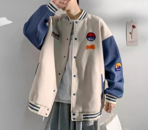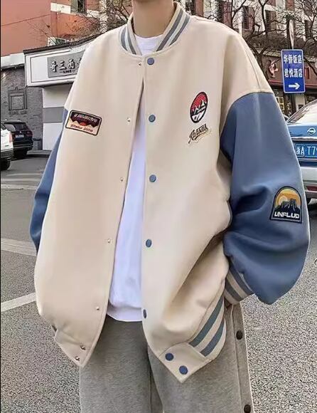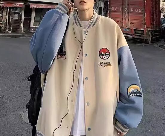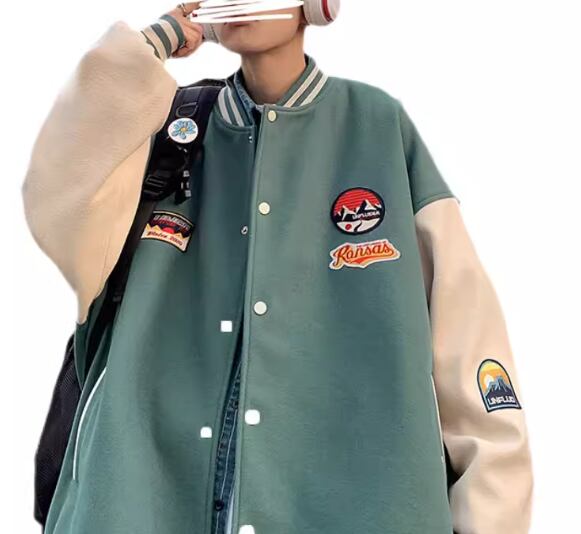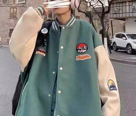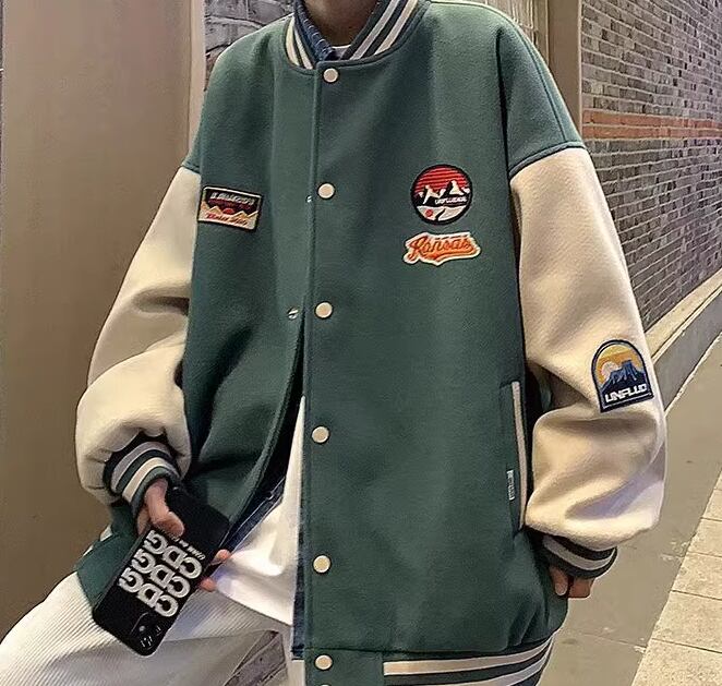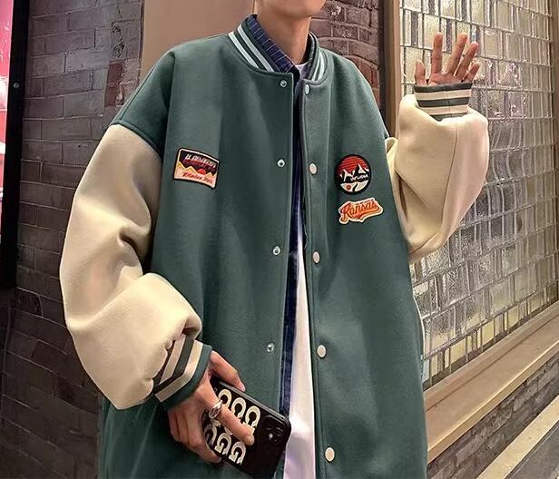 メンズ 男性用 ユニフォーム風 ジャケット アウター 上着 スタジャン ミドル丈 長袖 スタンドカラー ベースボールカラー かわいい カジュアル おしゃれ レトロ ラフ 個性的 クール 存在感 キュート 爽やか ハンサム シック スタイリッシュ 春 秋 10代 20代 学生 デート お出かけ 普段使い 着回し M L XL アプリコット グリーン