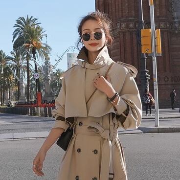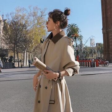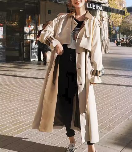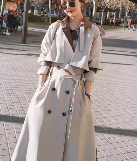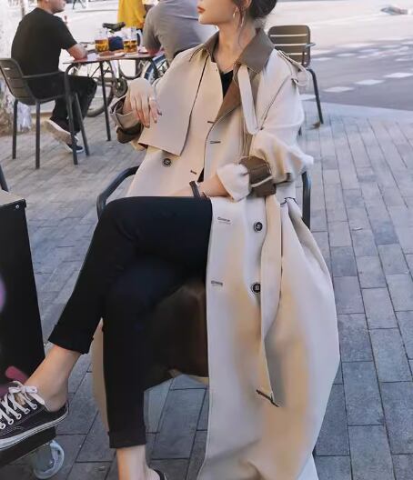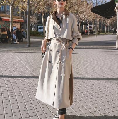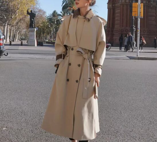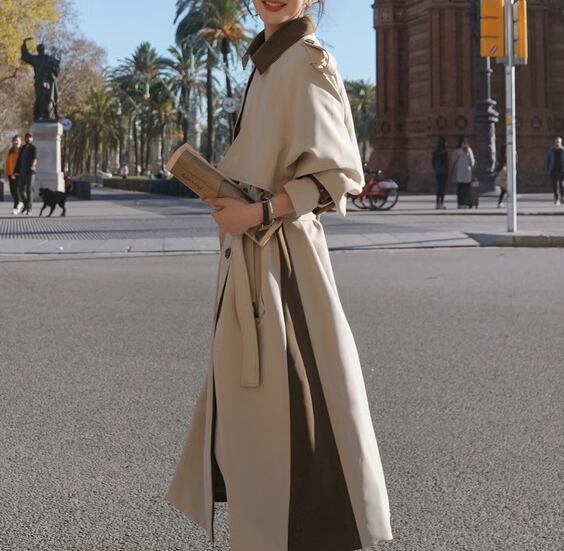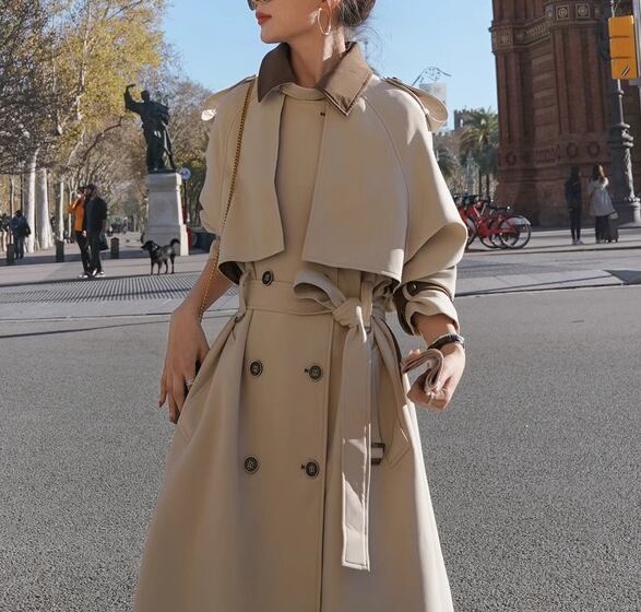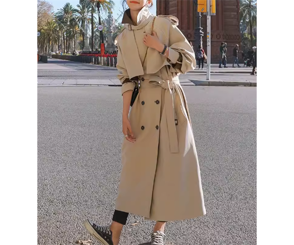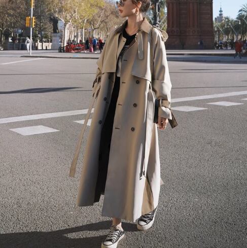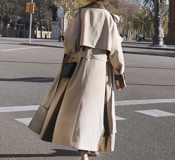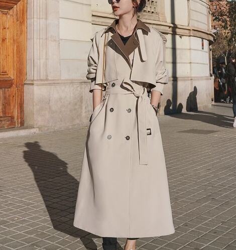 英国風のスタイリッシュなデザインがおしゃれなロング丈のトレンチコート。