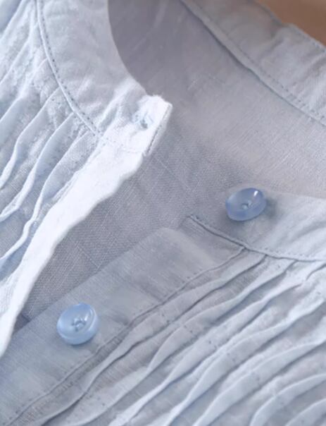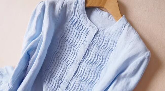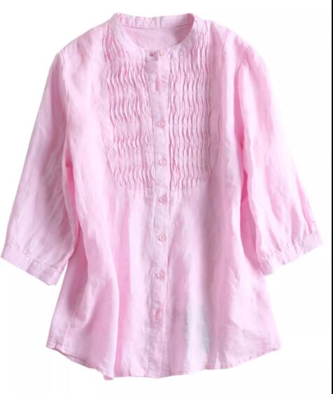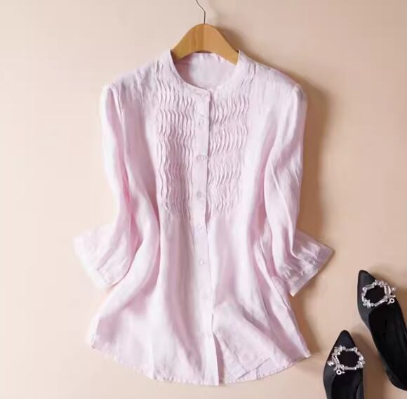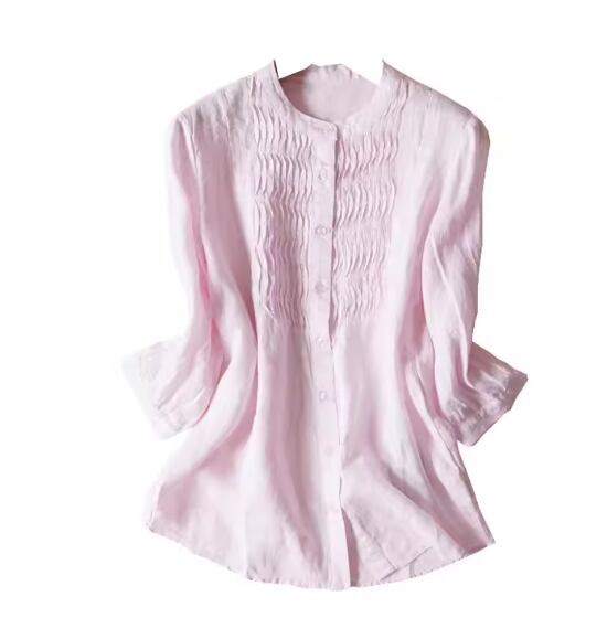 レディース トップス シャツ ミドル丈 7分袖 ラウンドネック ストレート プリーツ ボタン リネン 大人可愛い きれいめ シンプル カジュアル 上品 おしゃれ レトロ エレガント クラシカル ナチュラル 知的 清潔感 爽やか シック 高級感 オフィスカジュアル スタイリッシュ 優しい 穏やか 無地 春 夏 オフィス OL 通勤 デート お出かけ 普段使い 着回し 清楚 M L ピンク ライトブルー 大人デザイン