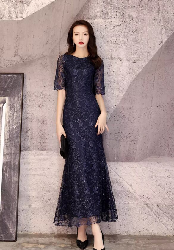 レディース ワンピースドレス ロング 5分袖 ラメ感 袖あり ラウンドネック 襟なし セミフレア Aライン フェミニン 刺繍 ハイウエスト かわいい 大人可愛い きれいめ 上品 おしゃれ アジアン エレガント 主役級 存在感 フォーマル 都会的 花柄 フラワー 春 夏 秋 入学式 入園式 結婚式 二次会 披露宴 発表会 女性 デート お出かけ パーティー イベント レストラン 美脚 脚長 モテ L XL 2XL ネイビー 大人カラー 秋カラー