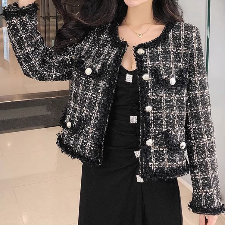 ツイード素材が上品なノーカラージャケット