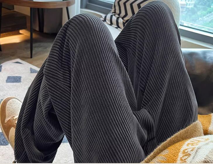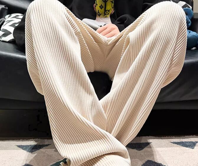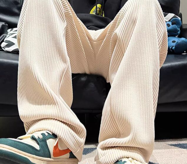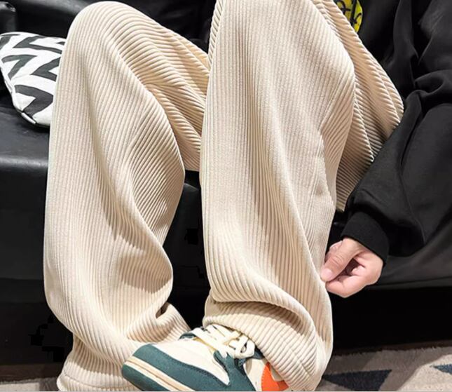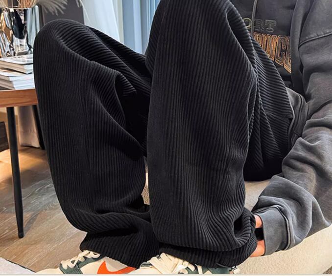 メンズ 男性用 パンツ ボトムス カジュアルパンツ ストレート 厚手 コーデュロイ ベルベット スウェット ストレッチ 伸縮性 かわいい シンプル カジュアル レトロ ラフ クール キュート ナチュラル ハンサム シック 高級感 優しい 穏やか 無地 秋 冬 デート お出かけ 韓国 オルチャン 暖かい 防寒 普段使い 着回し S M L ブラック グレー アプリコット 秋カラー