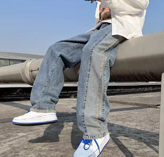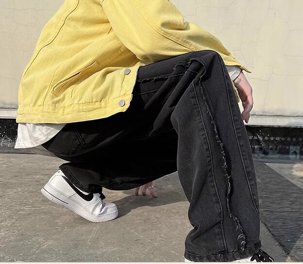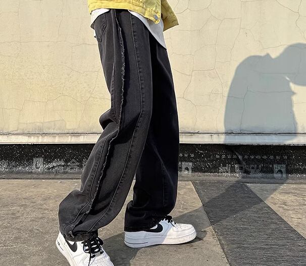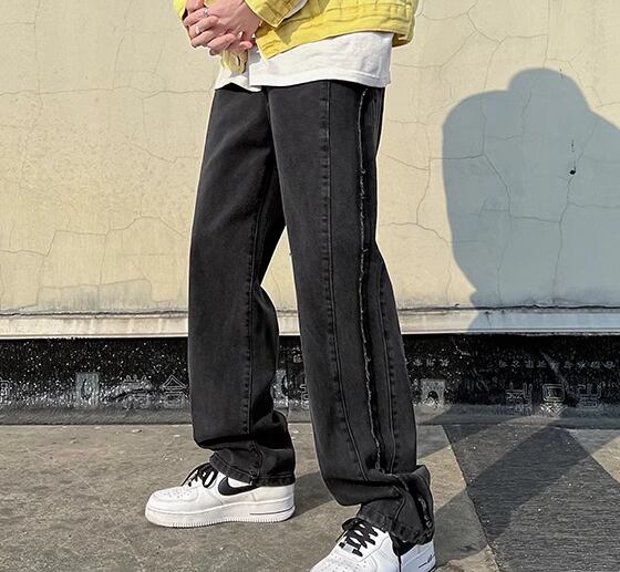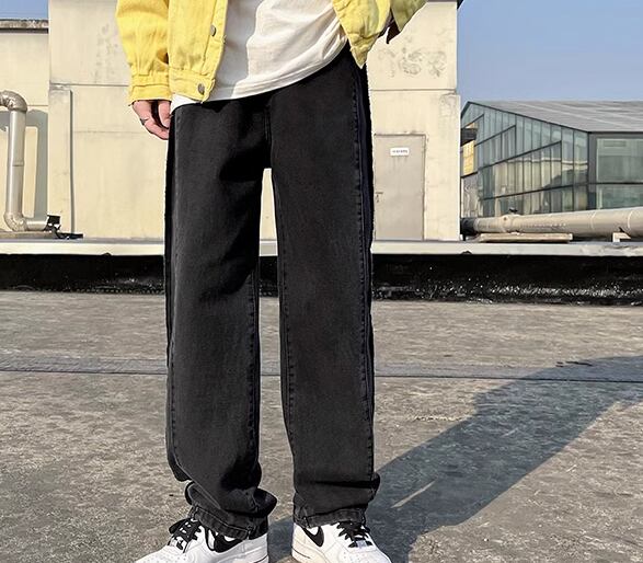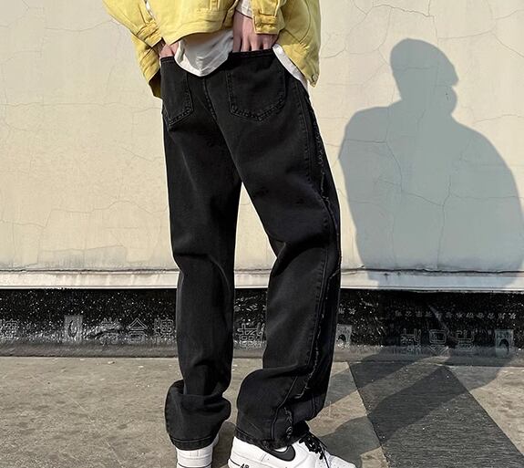 メンズ 男性用 デニム Gパン ジーンズ フルレングス ワイド ストレート ストリート ヒップホップ ファスナー ウォッシュ ブルーデニム カラーデニム シンプル カジュアル おしゃれ かっこいい レトロ ラフ ルーズ クール ラグジュアリー ワイルド ハンサム シック 高級感 スタイリッシュ 無地 秋 冬 デート お出かけ 普段使い 着回し S M L XL ブラック ブルー