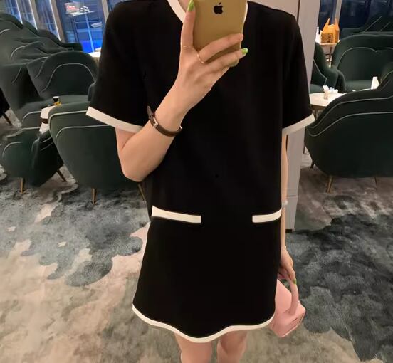 モノトーンな二色使いがおしゃれな半袖のショート丈ワンピース。