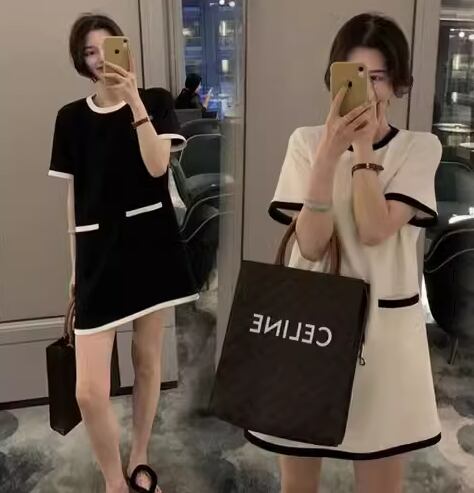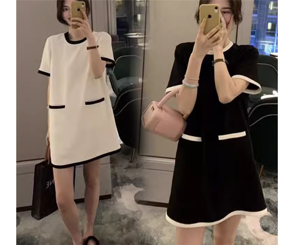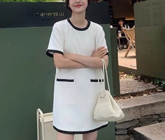 レディース ワンピース プルオーバー ドレス ミニ ショート 膝上 半袖 ラウンドネック Aライン ハイウエスト 大人可愛い きれいめ シンプル カジュアル レトロ ラフ ルーズ ナチュラル リラックス シック スタイリッシュ 涼しげ 無地 夏 デート お出かけ モノトーン 楽ちん 普段使い M L XL ゆったり ゆる ホワイト ブラック バイカラー