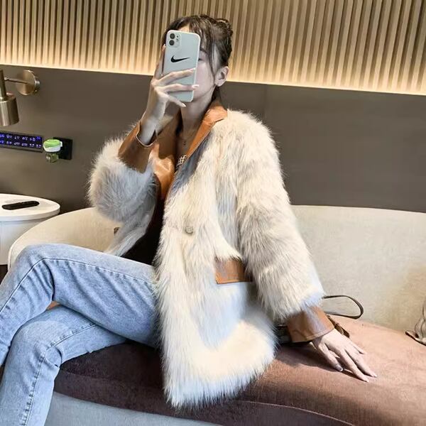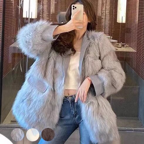 3色展開 ミッドレングスのフェイクファーコート レディース コート スーツジャケット アウター ファー ミディアム ショート レザーステッチ 長袖 ワイド ふわふわ ふっくら フェイクファー かっこいい エレガント 無地 冬 OL 学生 お出かけ ショッピング 韓国 暖かい