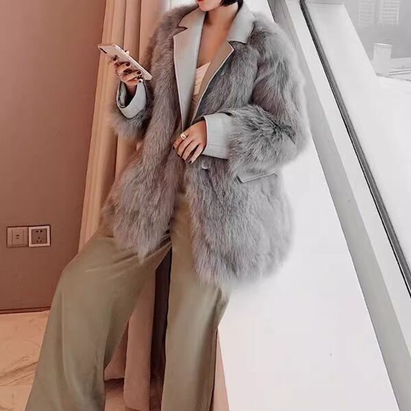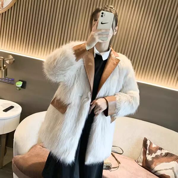 ミッドレングスフェイクファーコートは、シックな無地デザインとワイドなシルエットが、エレガントさとかっこよさを演出しています。レザー仕上げの、袖・襟・ポケットフラップがアクセント。トレンド感のある韓国ファッションを取り入れたスタイルで、あなたの冬のコーディネートを素敵に彩ります