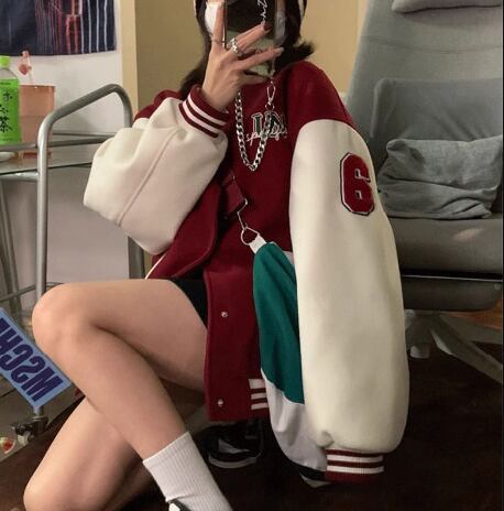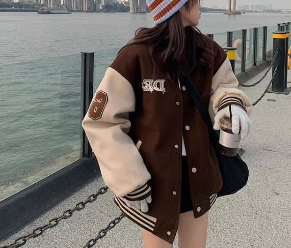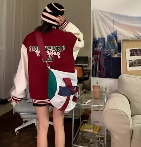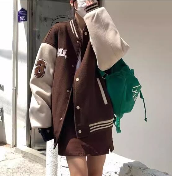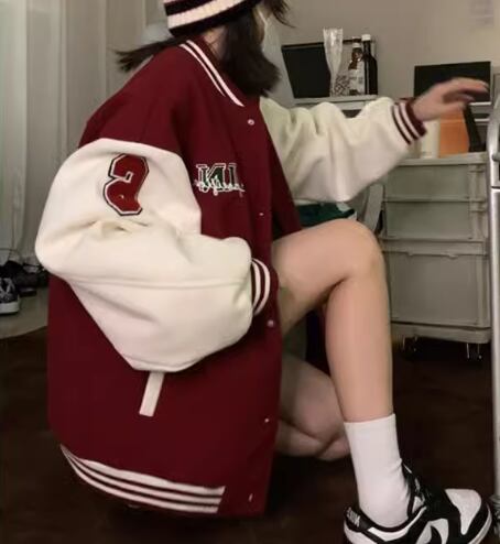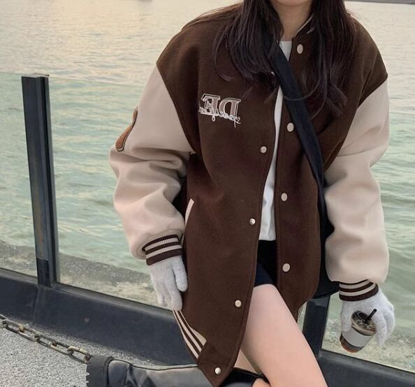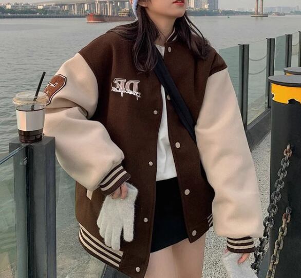 ユニフォーム風 レディース ジャケット アウター 上着 スタジャン ミドル丈 長袖 スタンドカラー ベースボールカラー 薄手 かわいい カジュアル おしゃれ かっこいい レトロ ラフ メンズライク ボーイッシュ スポーティー ルーズ クール 存在感 ヴィンテージ キュート ワイルド 爽やか ハンサム シック スタイリッシュ 春 秋 10代 20代 学生 デート お出かけ 普段使い 着回し トレンド 流行 M L XL ゆったり ゆる 大きめ オーバーサイズ ブラウン レッド