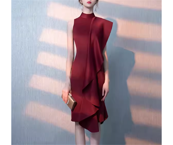 レディース ドレス イブニングドレス パーティードレス 膝丈 袖なし ノースリーブ スリム 細身 フリル 大人可愛い きれいめ 上品 おしゃれ かっこいい こなれ感 個性的 クール エレガント モダン 存在感 ラグジュアリー シック 高級感 芸術的 アーティスティック 華やか スタイリッシュ 無地 夏 デート お出かけ パーティー イベント S M L XL 小さめ ホワイト ブラック ワインレッド