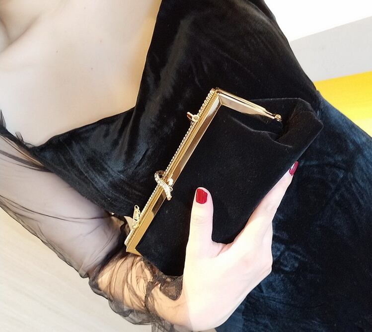 バッグ レディース 手持ち パーティー クラッチ スリム スクエア がま口 ゴールドチェーン ベロア ベルベット スエード 大人可愛い きれいめ シンプル 上品 お洒落 クール エレガント モダン フォーマル 華やか 無地 パーティー イベント 高見え 秋 冬 結婚式 披露宴 お食事会 小さめ 黒 バイカラー 光沢 高見え