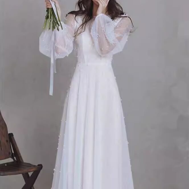 ドレス ワンピース ウェディング パーティー 結婚式 二次会 披露宴 演奏会 発表会 ステージ 舞台 ダンス 衣装 演劇 ロング マキシ 長袖 ボリューム ラウンドネック 襟なし プリンセスライン Aライン レース ハイウエスト 透け感 シースルー 薄手 可愛い きれいめ シンプル 大人可愛い 上品 おしゃれ レトロ アジアン キュート ガーリー クール モード エレガント モダン 主役級 存在感 とろみ感 クラシック 清楚 ゴージャス エレガント 華やか ナチュラル クラシカル 二の腕カバー 高見え