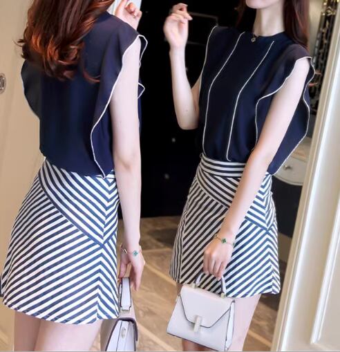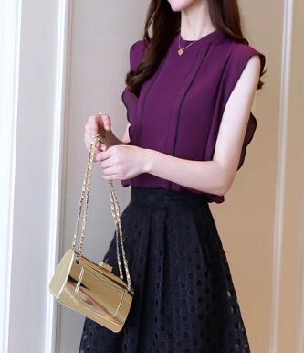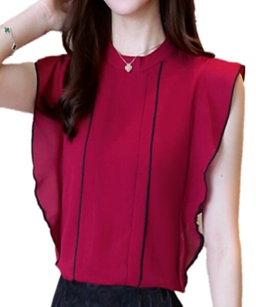 レディース トップス ノースリーブ フリル袖 ラウンドネック フェミニン シフォン ライン フリル 上品 エレガント ラブリー キュート 華やか 無地 ストライプ 春 夏 オフィス デート お出かけ 女子会 大人可愛い 合コン モテ 清楚 清潔感 S M L XL 2XL ブルー レッド グリーン パープル