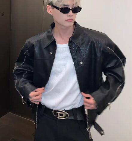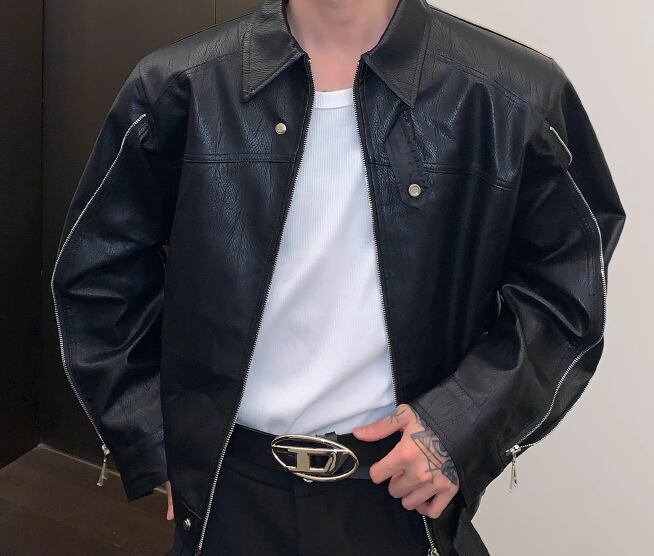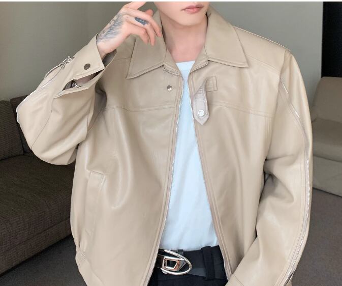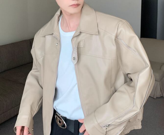 メンズ 男性用 ジャケット アウター 上着 レザージャケット ショート ミドル丈 長袖 ファスナー シンプル カジュアル 上品 おしゃれ かっこいい レトロ こなれ感 ルーズ クール エレガント クラシカル ワイルド ロック セクシー ハンサム シック 高級感 スタイリッシュ 無地 秋 デート お出かけ 普段使い 着回し モテ トレンド 流行 M L XL ゆったり 大きめ オーバーサイズ ブラック アプリコット