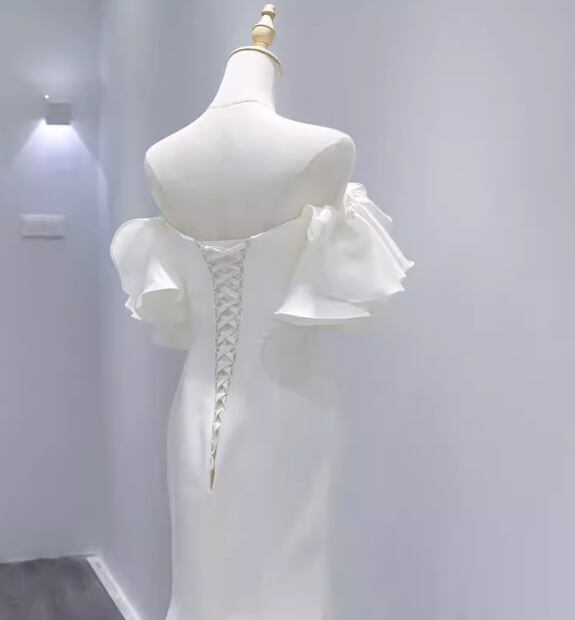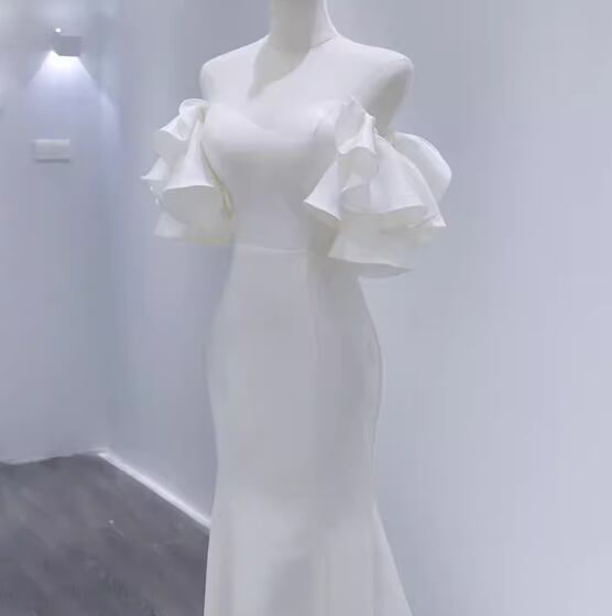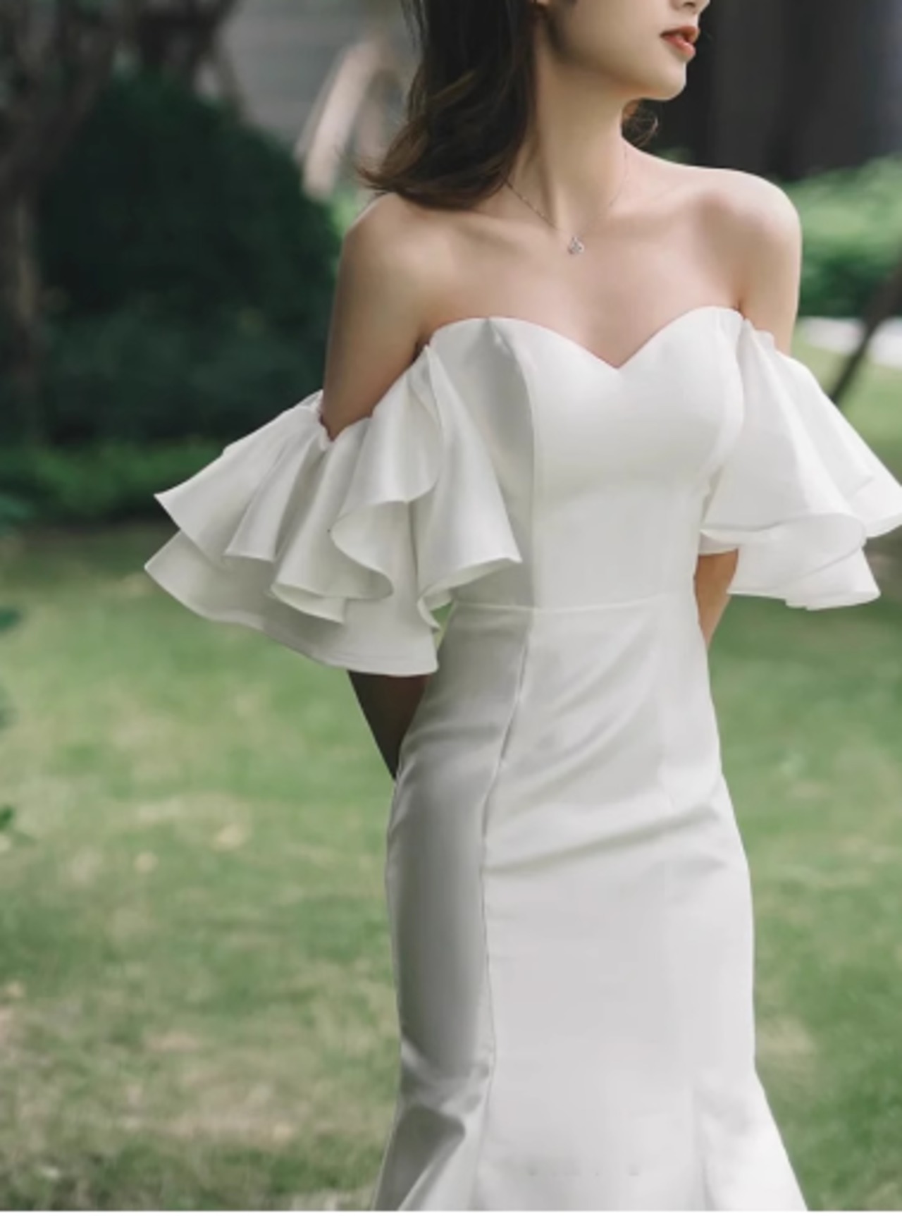 レディース ドレス ブラックドレス ウェディング パーティー 結婚式 二次会 披露宴 ロング マキシ オフショル マーメイド スリム 細身 フィッシュテール ファスナー サテン きれいめ シンプル 大人可愛い 上品 おしゃれ エレガント 主役級 存在感 クラシック 清楚 セクシー シック 華やか クラシカル 女性らしい 無地 春 秋 ブライダル 花嫁 新婦 XS S M L XL 小さめ 小さいサイズ ホワイト