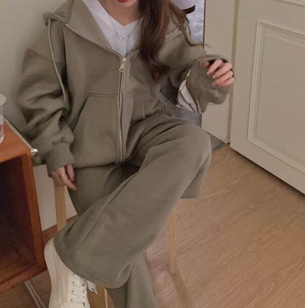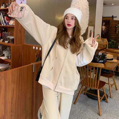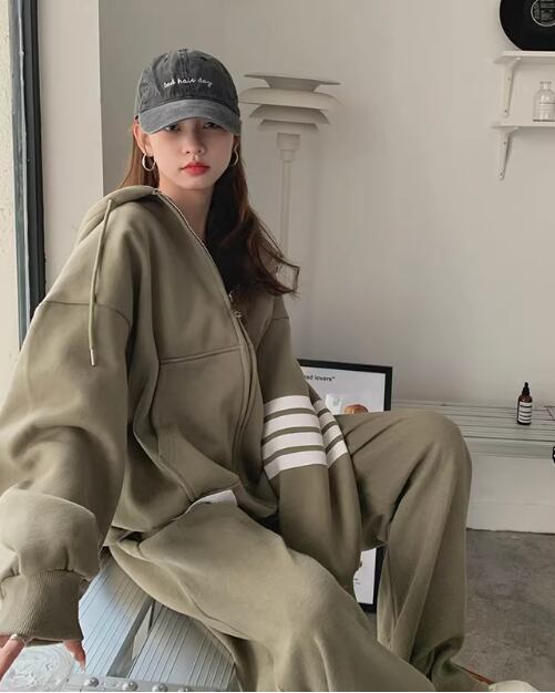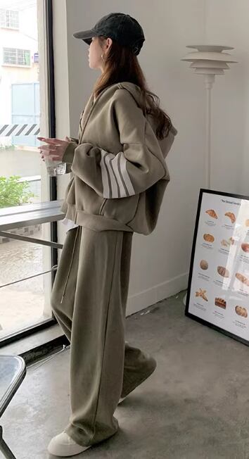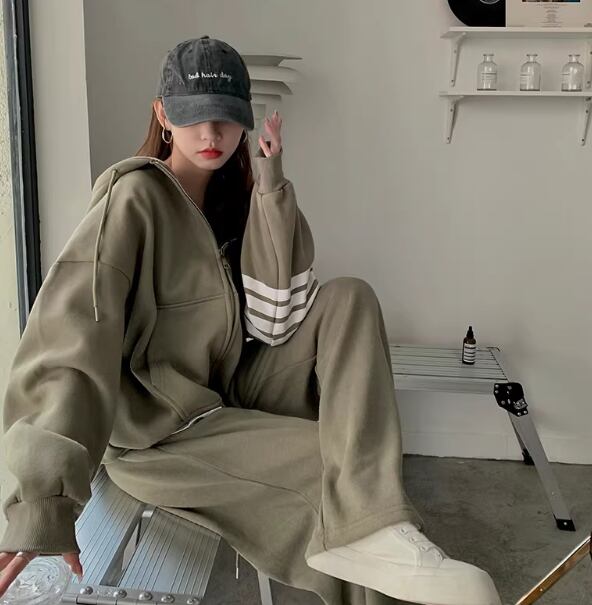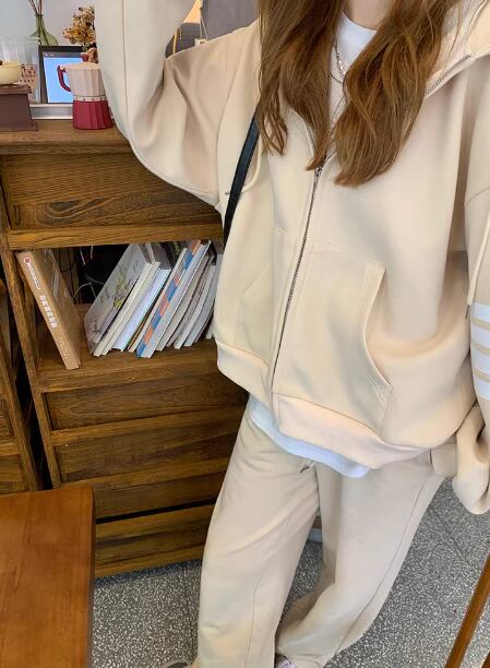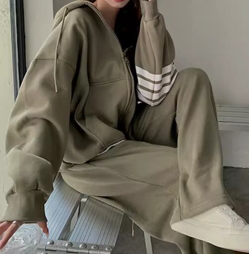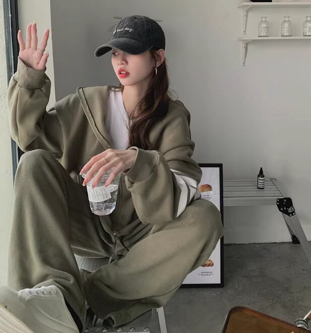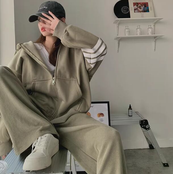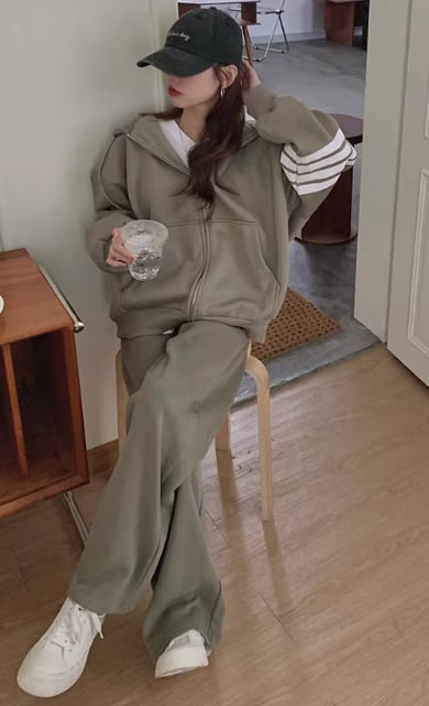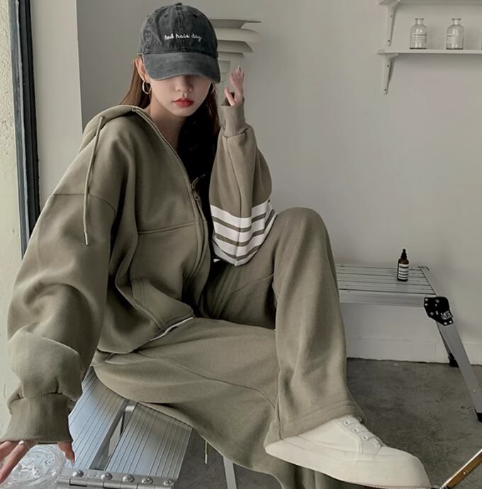 トレンド感満載のこのアイテムは、パーカートップスとストレートパンツのセットで、忙しい朝でもおしゃれに決まる便利アイテムです。フードにはドローストリングが付いており、裾はワイドデザインでスポーティーなルックス。コットン素材なので、厚手でしっかりとした作りで暖かさもしっかりキープしながら、ラフでスポーティーな着こなしを叶えてくれます。