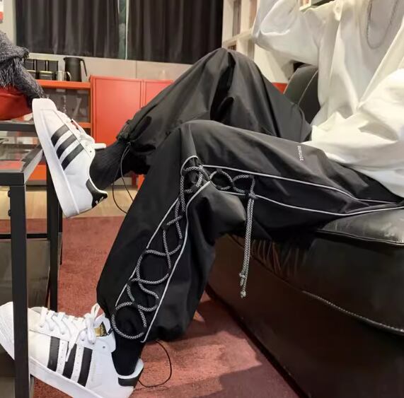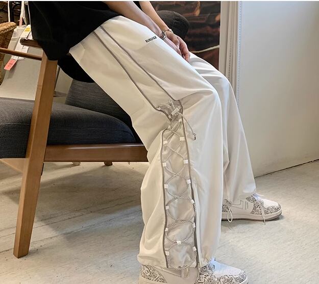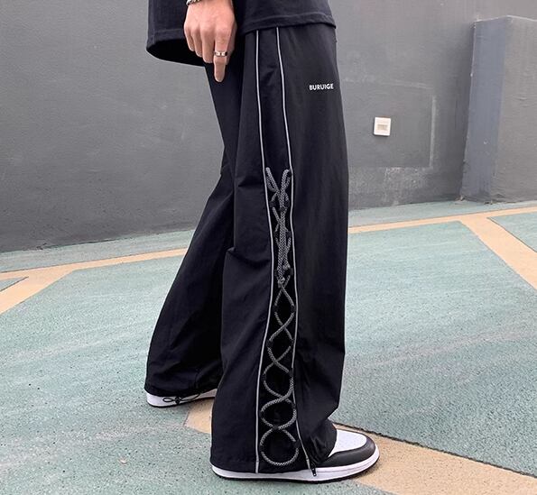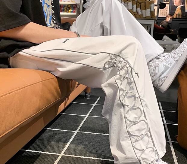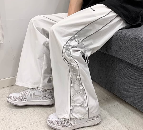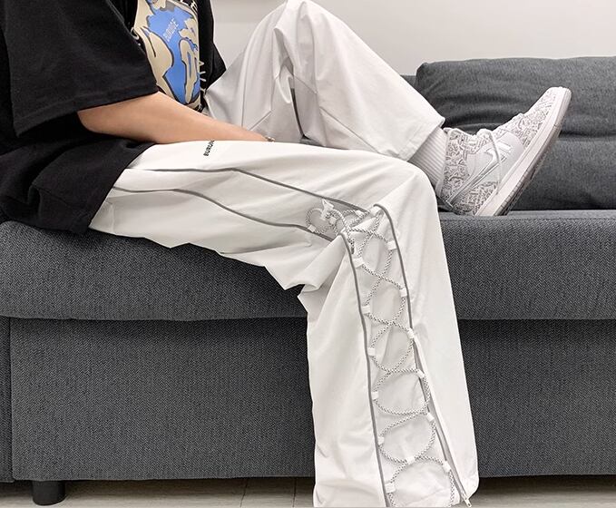 メンズ 男性用 男女兼用 ユニセックス レディース パンツ ボトムス スポーツウェア スウェット ジャージ ワイドパンツ 9分丈 アンクル丈 フルレングス ストリート ヒップホップ ウエスタン ハイウエスト カジュアル おしゃれ かっこいい ラフ メンズライク ボーイッシュ スポーティー ルーズ 個性的 クール ラグジュアリー ワイルド シック スタイリッシュ 春 脚長 普段使い 着回し トレンド 流行 M L XL ホワイト ブラック