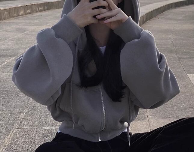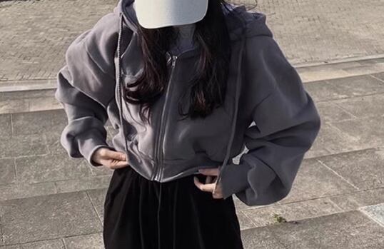 シックなカラーが大人可愛い長袖のショート丈パーカー。