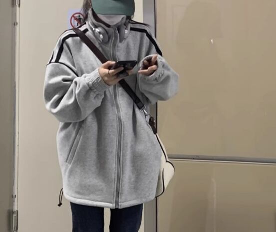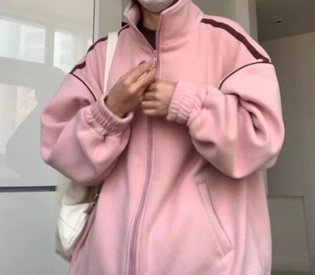 レディース トップス パーカー スウェット ジャージ ミドル丈 長袖 スタンドカラー ファスナー 厚手 ベルベット シンプル カジュアル おしゃれ かっこいい ラフ メンズライク ボーイッシュ スポーティー ルーズ クール シック スタイリッシュ 秋 冬 デート お出かけ 普段使い 着回し トレンド 流行 S M L XL ゆったり ゆる 大きめ オーバーサイズ グレー ピンク