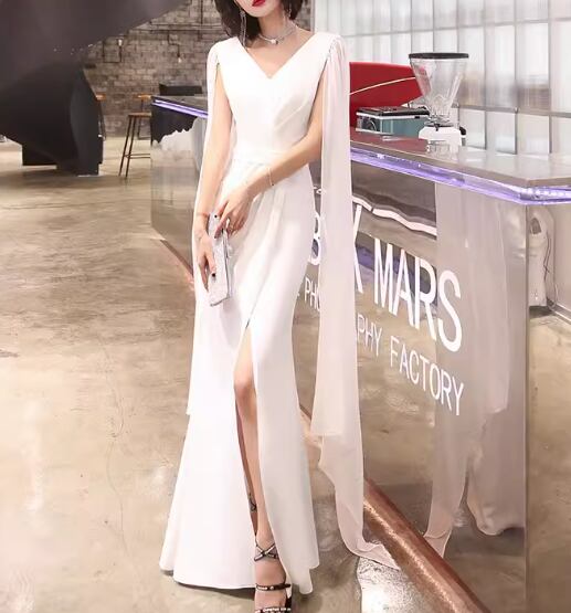 レディース ドレス イブニングドレス パーティードレス ロング マキシ 袖なし ノースリーブ Vネック スリム 細身 マーメイド フィッシュテール スリット ファスナー 大人可愛い きれいめ シンプル 上品 おしゃれ かっこいい こなれ感 個性的 クール エレガント モダン 存在感 ラグジュアリー セレブリティ セクシー シック 高級感 芸術的 アーティスティック 無地 夏 デート お出かけ パーティー イベント XS S M L XL 小さいサイズ 小さめ ホワイト ブラック ワインレッド