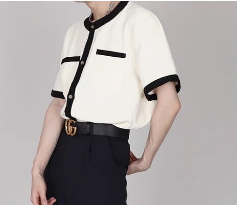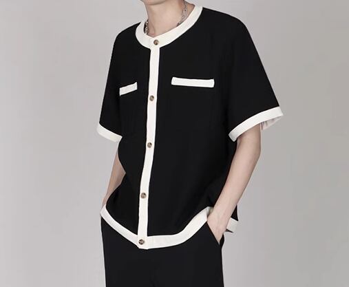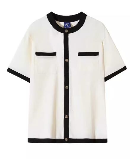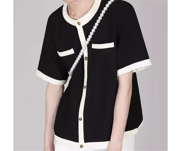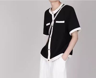 ブラック×ホワイトのモノトーンな二色使いが大人っぽい半袖カーディガン。