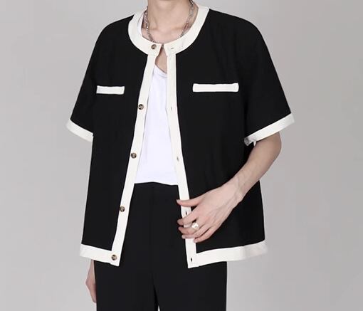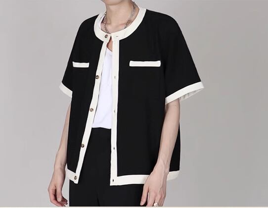 メンズ 男性用 トップス カーディガン 羽織 Tシャツ ミドル丈 半袖 ラウンドネック かわいい シンプル カジュアル 上品 おしゃれ かっこいい こなれ感 個性的 クール エレガント モダン キュート ラグジュアリー ナチュラル 清潔感 爽やか ハンサム シック 高級感 スタイリッシュ 無地 夏 デート お出かけ 重ね着 普段使い 着回し レイヤード トレンド 流行 M L XL ブラック オフホワイト