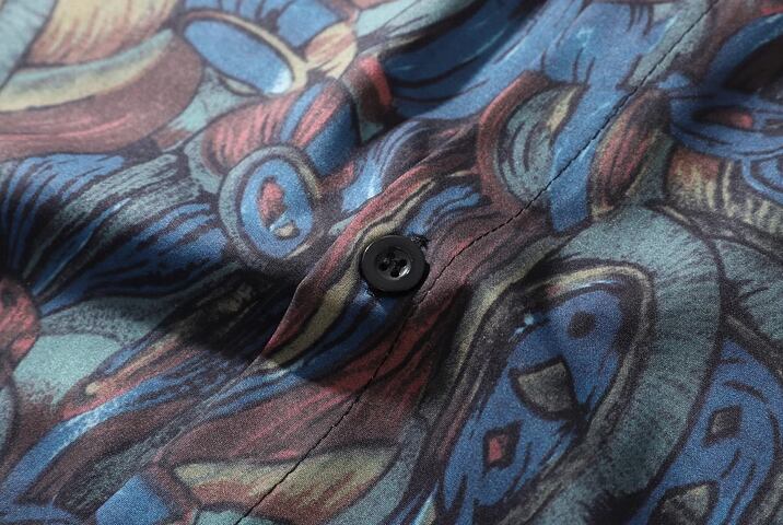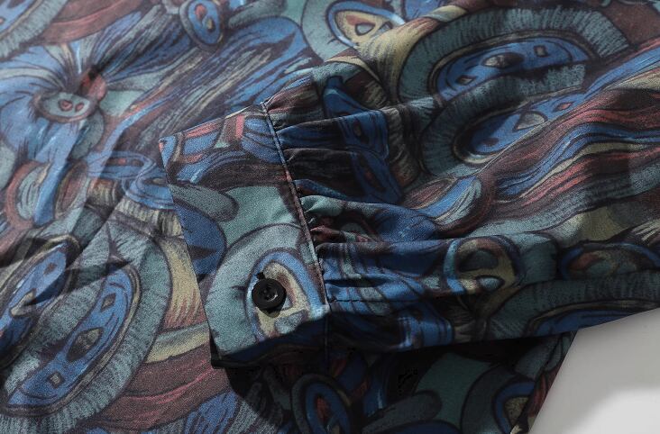 メンズ 男性用 男女兼用 ユニセックス レディース トップス シャツ ミドル丈 長袖 襟付き ウエスタン 前開き 異国風 ボタン ヴィンテージ 大人可愛い カジュアル 上品 おしゃれ かっこいい レトロ こなれ感 ボーイッシュ ルーズ 個性的 クール エレガント 存在感 ラグジュアリー 派手 ハンサム 高級感 芸術的 アーティスティック ボタニカル プリント 春 夏 秋 冬 オールシーズン デート お出かけ 普段使い 着回し トレンド 流行 M L XL ゆったり ゆる 大きめ オーバーサイズ ブルー
