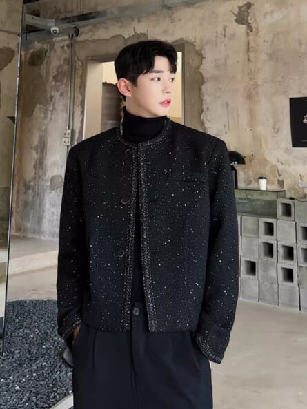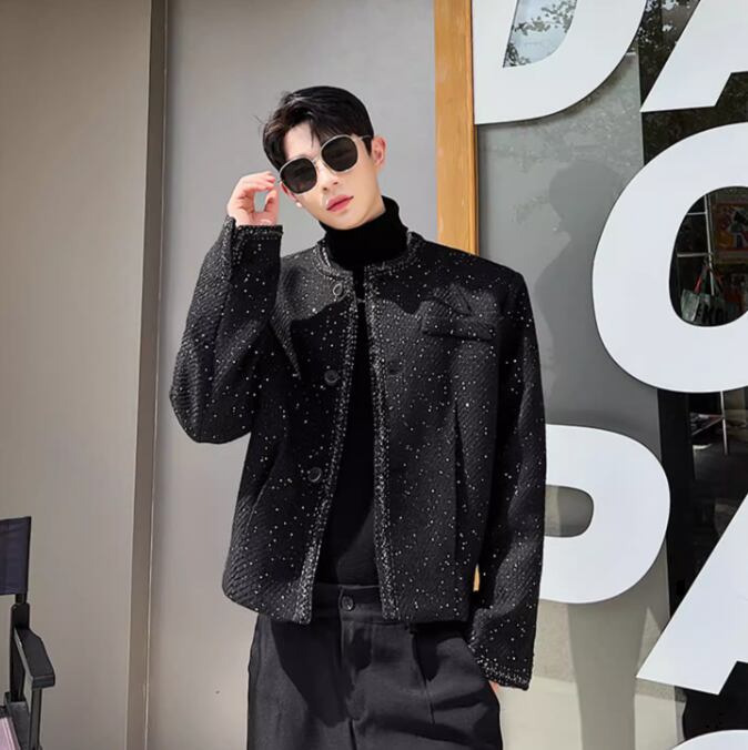 レディース ジャケット カーディガン メンズ ショート 長袖 ラメ感 ラウンドネック 襟なし ノーカラー ストレート 中厚手 きれいめ おしゃれ かっこいい マニッシュ 個性的 クール エレガント モダン 主役級 存在感 都会的 ラグジュアリー クラシカル 無地 秋 冬 母の日 授業参観 会議 ミーティング 男女兼用 ユニセックス OL 通勤 デート お出かけ リゾート 旅行 ホテル 発表会 コンサート 韓国 オルチャン コーデ 暖かい 防寒 トレンド 流行 インスタ映え M L XL 2XL 3XL ブ