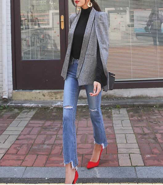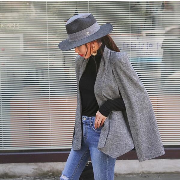 2色展開 レディース ケープスーツジャケット スプライシングミッドレングススリムショール ジャケット 上着 ショール ミッドレングス ノースリーブ ストレート チェック ビジネス 通勤 パーティー レストラン ショッピング 韓国 トレンド S M L XL ブラック グレー