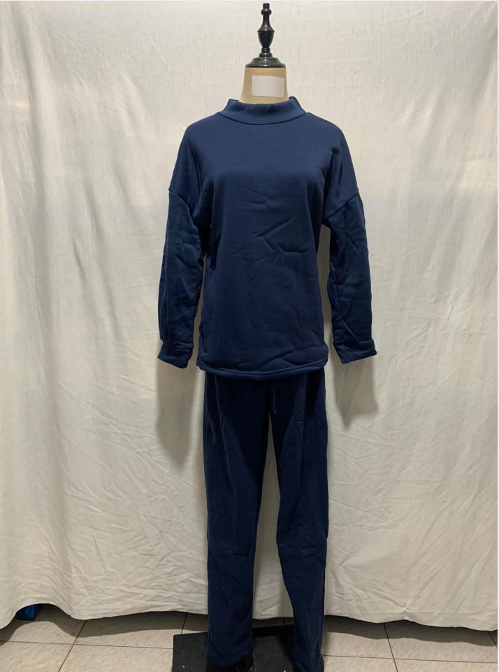 長袖で襟なしの上下セットは、部屋着としてもおしゃれなデザインです。