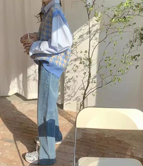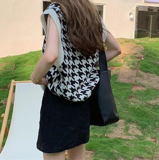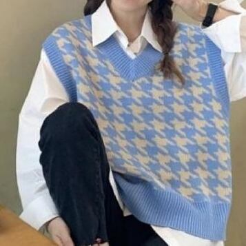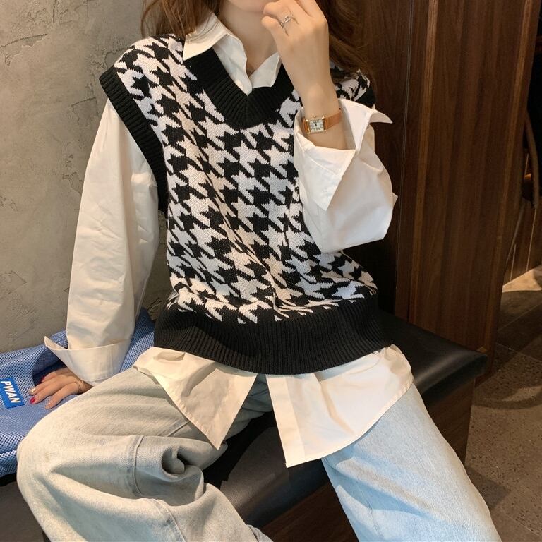 ユニセックス レディース トップス ニット ベスト カジュアルスーツ ミドル丈 袖なし ノースリーブ Vネック バイカラー 配色 ニット 伸縮性 かわいい カジュアル こなれ感 ラフ カレッジ風 学生風 千鳥格子 オールシーズン 男女兼用 ユニセックス 学生 学校 重ね着 楽ちん 暖かい 防寒 体型カバー 普段使い レイヤード S M L XL 2XL ゆったり